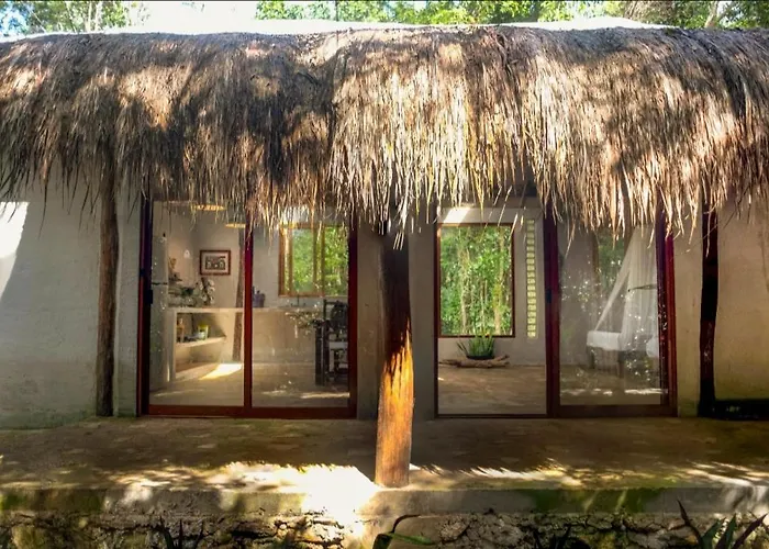Situada a unos 10 minutos en coche del Parque Nacional Arrecife Puerto Morelos, la Cabana Ja Nik Puerto Morelos invita a los huéspedes a relajarse en una terraza.